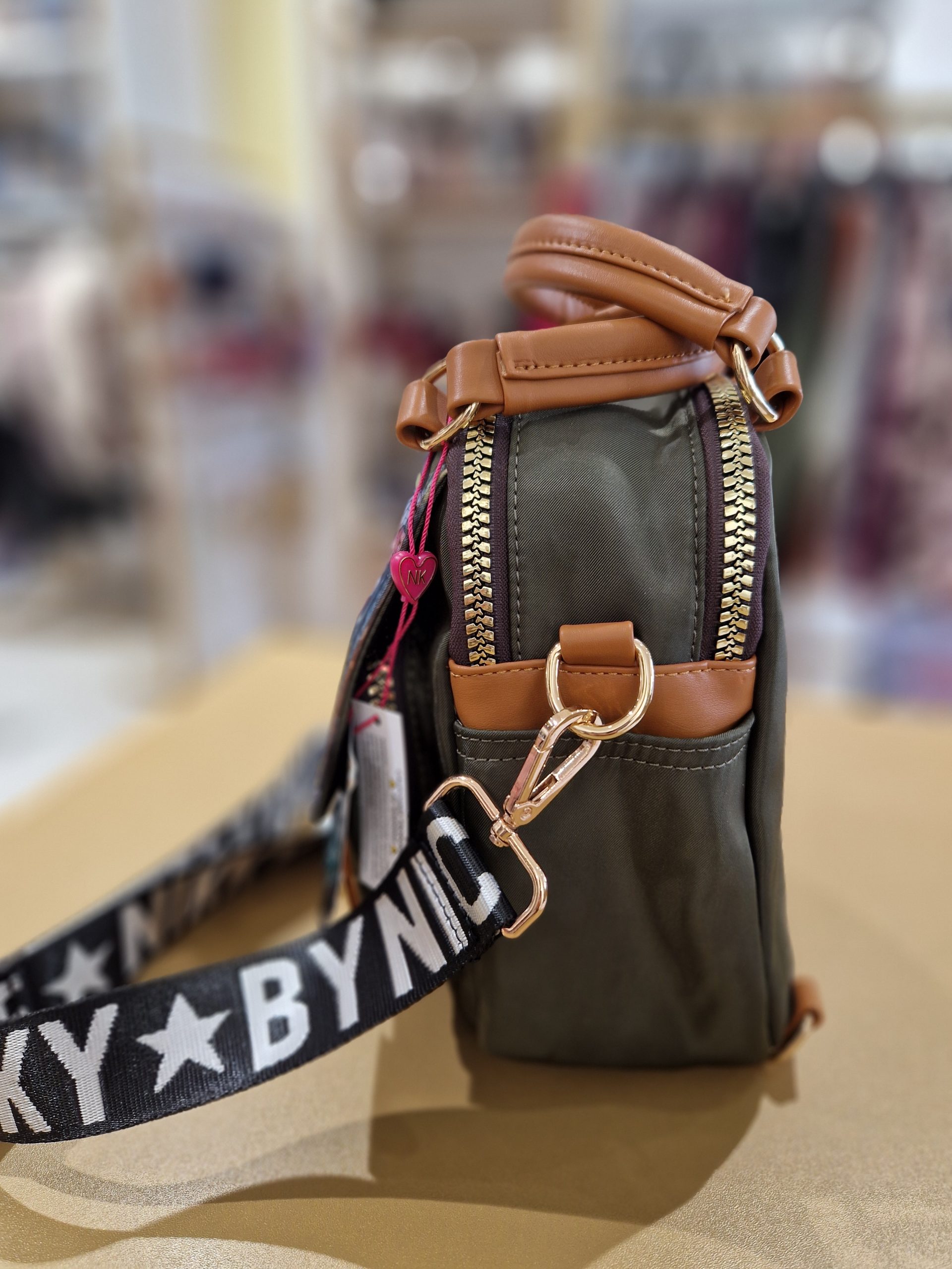 Tasca frontale con patta e scomparto con cerniera nascosta