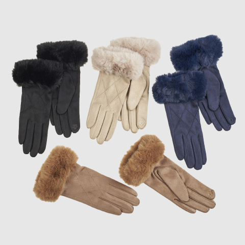 Guanti donna a tinta unita con polsino in ecopelliccia. Morbidi al tatto e con cucitura al dito per il touch. Linea Verde.